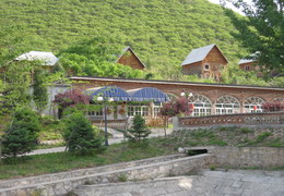 原生態山莊位于順義區東北部的焦莊戶地道戰遺址旁,坐落在安利隆生態觀光園內,彌漫著一種獨具特色的田園風情。山莊四周被青翠山巒所包圍,地表遍植草坪花木,松柏爭翠,奇葩競艷,儼然一個天然的大氧吧。