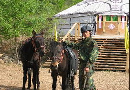 蒙古包:蒙古語稱格兒,游牧民族為適應游牧生活而創造的這種居所,易于拆裝,便于游牧。自匈奴時代起就已出現,一直沿用至今。